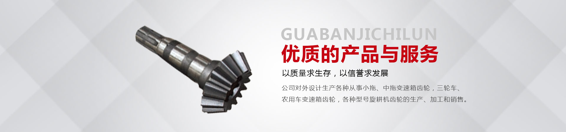 本廠位于省會東南60公里的全國重點鎮(zhèn)——大陸村鎮(zhèn)。本廠在市場內(nèi)設(shè)有銷售公司,經(jīng)銷工程機械;農(nóng)用拖拉機;農(nóng)機具的整機和全車配件。市場緊靠308國道,距青銀高速寧晉路口14公里,交通十分方便。主要從事小拖、中拖變速箱齒輪,三輪車、農(nóng)用車變速箱齒輪,各種型號旋耕機齒輪、收獲機械變速箱齒輪的生產(chǎn)、加工和銷售。同時加工定做各種直齒輪,傘齒輪,斜齒輪,鏈輪,齒輪軸等機械產(chǎn)品。廠內(nèi)檢測手段齊全。十幾年來與河北、北京、山東、安徽、河南、吉林、陜西、山西、寧夏、黑龍江、遼寧等省市的企業(yè)建立了穩(wěn)固的業(yè)務(wù)關(guān)系。產(chǎn)品質(zhì)量穩(wěn)定、價格合理、供貨及時。